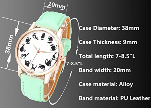 -. Feature : Material:faux leather/Alloy Case:38*38*9mm Band:20*4mm Length:7-8.5" / Not water proof, please don't soke it into water,DO NOT wear it when taking shower or swimming. / There are twelve cats on the case, each of them has different posts. Each cat stands for different time. A must have watch for cat lovers. / Simple , fashion and really cool design. Suitable for daily use . Comfortable wearing. It is also a great gift for friends. / Each order comes with a grey velet bag P.R.Inted Top plaza.