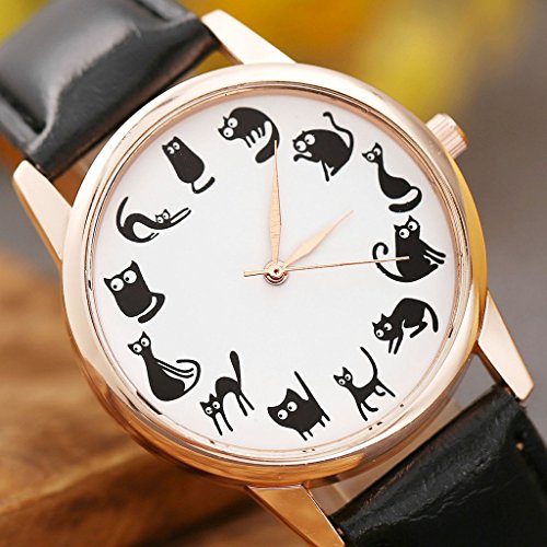 -. Title : Top Plaza Fun Animal Series Twelve Cute Cats Scale Rose Golden Case PU Leather Strap Womens Girls Quartz Wrist Watch,Black