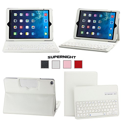 -. Title : SUPERNIGHT Apple iPad Air 2 Keyboard Case Cover - Ultra-Slim Smart Shell Portfolio Leather Case Light Weight Stand with Magnetically Detachable Wireless Bluetooth Keyboard for iPad 6 / iPad Air 2 Tablet , White Color