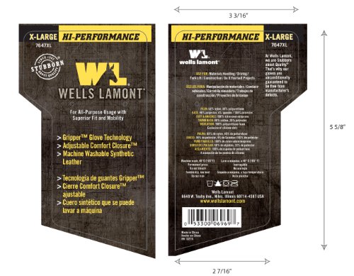 Wells Lamont Synthetic Leather Work Gloves, High Dexterity Gripper, Extra Large (7647XL)