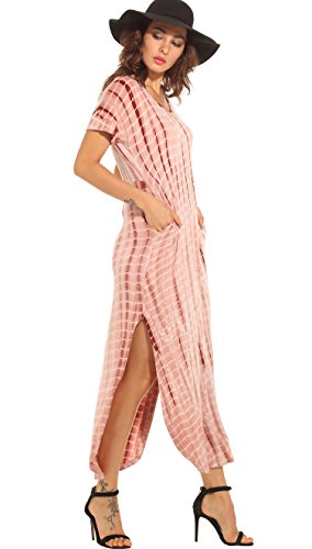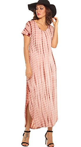 Womwen's Casual Maxi Short Sleeve Split Tie Dye Long Dress