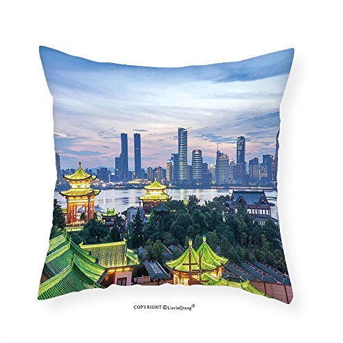 (VROSELV)/Kids' Furniture Room Decor/Room Decor/DIRECT FROM USA/VROSELV Custom Cotton Linen Pillowcase Landscape Aerial View Chinese City Shenzhen Urban Modern...