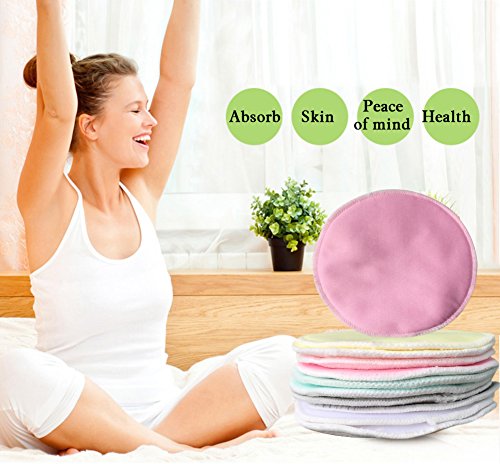-. Feature : PREMIUM QUALITY: Organic, hypoallergenic, absorbent and durable bamboo. The outside layer facing the bra is excellent leak-proof polyester. They will not chafe or otherwise irritate breast tissue already inflamed from feeding. Pads are breathable and will not get sticky when wet. / UNIQUE DESIGN: The 3 layered leak proof design increases absorbency and prevents unsightly leaks for mothers who are breastfeeding in the day and night. The highly absorbent ultra-fine fiber is superior absorbency. No embarrassing Leaking surP.R.Ises anymore. / INTIMATE COLLOCATION: 10 pack of 5 colors, 2 pack each color for night protection. They are ultra light which makes them easy to carry anywhere everywhere. Easily fit into the cups of most nursing bras. Successful breast feeding begins with comfort for mom. / EASY TO CLEAN: These breastfeeding pads are durable, reusable and will last for a long time. Easy to clean, wash in cold water, dry them and reuse again. You can wash just machine wash with the free comming laundry bag to keep them from getting lost. / LIFETIME RISK FREE GUARANTEED: Your purchase is fully protected when you order today. All of our products come with a MONEY-BACK GUARANTEE. If you're not 100% satisfied, we'll give you 100% of your money back, no questions asked. Absolutely no hassle and no risk on your part.
