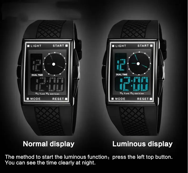 Feature:Back Light,Water Resistant,Chronograph,Shock Resistant,Repeater,Stop Watch,Complete Calendar,Swim,Auto Date,LED display