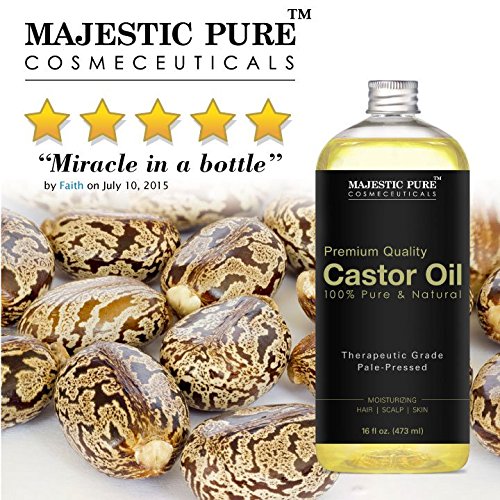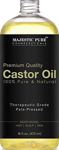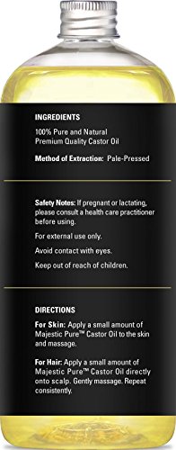 -. Feature : PREMIUM QUALITY Castor Oil for healthy hair and skin - 100% pure, gentle and more effective natural castor oil. No additives, unfiltered and undiluted with no fillers. One of the finest natural skin emollients available. / Castor oil is famous for a wide range of skin benefits including helping with infections, sunburn, abrasions, acne, dry skin, boils, warts, stretch marks, age spots, athletes foot and chronic itching and inflamed skin. Castor oil can help beautify your skin and solve some of these toughest problems and inflammatory conditions. / Castor Oil is readily and completely absorbed by skin. Skin feels smooth and plump. Castor oil has natural antibacterial and antifungal properties and is high in Vitamin E, minerals, proteins, and Omega 6 and 9 beneficial fatty acids. Its unusually high ricinoleic acid ratio makes it beneficial to skin and hair. It improves the appearance of the skin and gives it a youthful glow. / Castor oil has traditionally been used topically for acne and other skin conditions. It is also used on the scalp to help prevent and remedy hair loss. / LARGE 16 OUNCE and PREMIUM QUALITY - 100% GUARANTEE - Purchase with complete peace of mind, we are confident that our oils are by far the highest quality and most effective on the market. If you are not completely satisfied with Majestic Castor Oil, we will refund your entire purchase.
