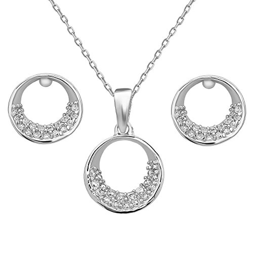 -. Title : Sterling Silver CZ Open Circle Earrings & Pendant Set with 18" Chain