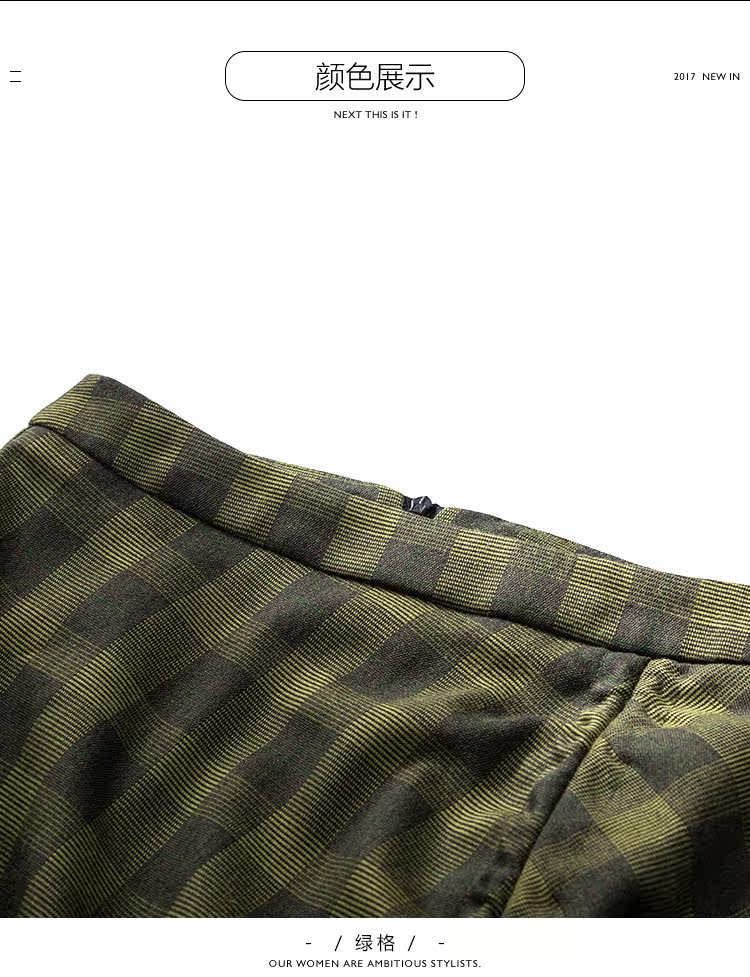 | 面 料:67.2%聚酯纤维 30.6%粘纤 2.2%氨纶 里 料:聚酯纤维颜 色:绿格 |