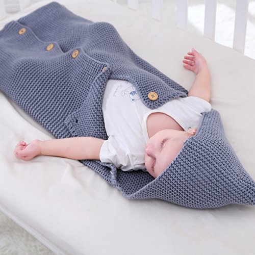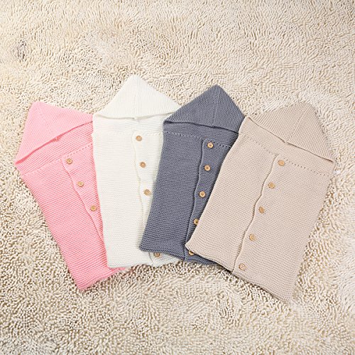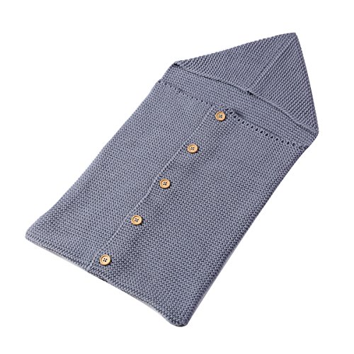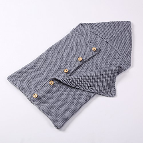 Newborn Baby Swaddle Blanket Soft Knit Wrap Sleep Bag, Oenbopo Baby Kids Toddler Hooded Knit Blanket Swaddle Sack Stroller Wrap Crib Blanket 15" x 28" for 0-12 Month (Grey)