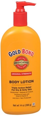 -. Feature : Gold Bond Medicated Body Lotion / Original Strength / Triple Action Relief For Dry & Itchy Skin / Moisturizes, Relieves, & Protects - Soothes & Cools With Aloe & Vitamin E - Anti-Itch / Skin Protectant / Net Wt. 14 OZ (396 g) Each - Pack of 3 Bottles Per Quantity Ordered