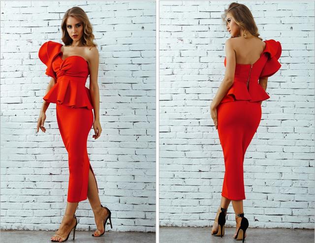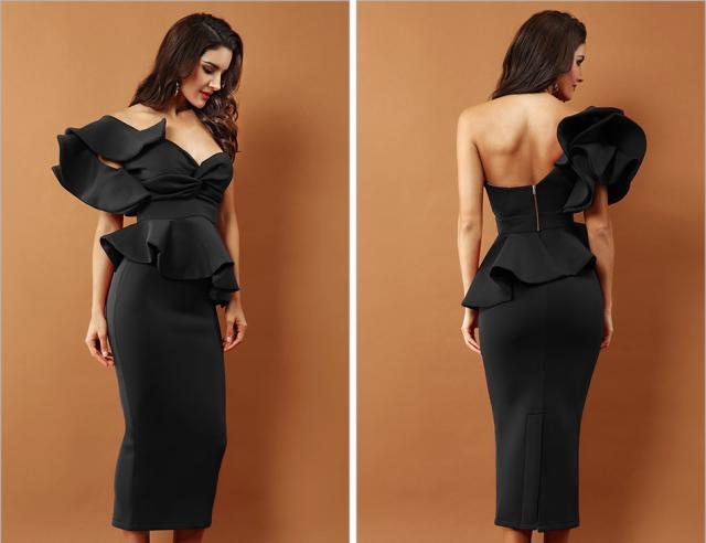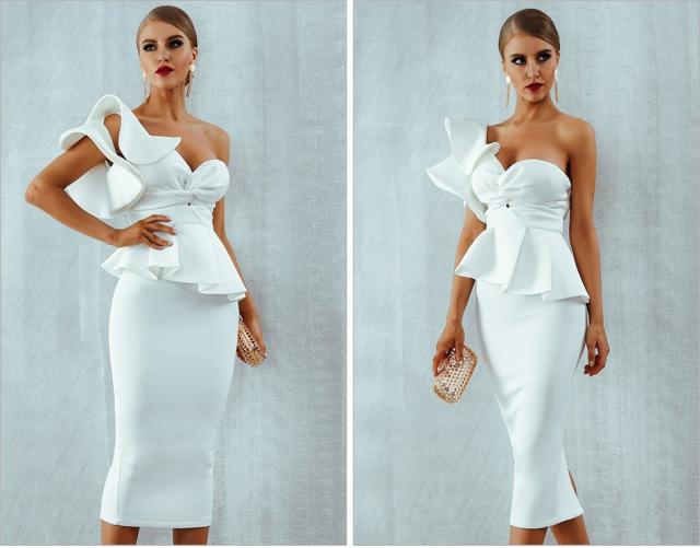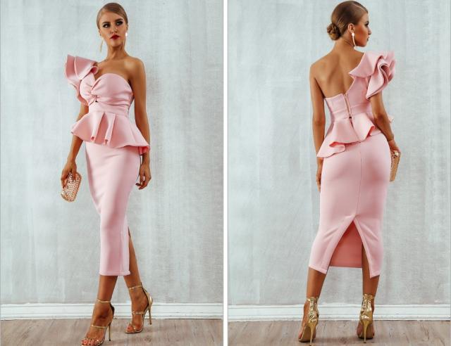 体にフィットするミディアムドレス