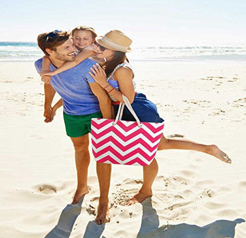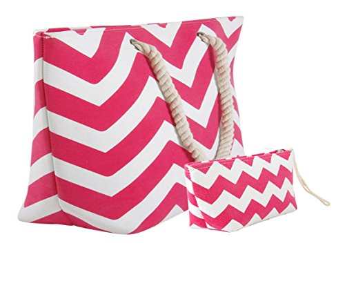 -. Title : Eshma Mardini Striped Canvas Chevron Shoulder Beach Tote Bag with Pouch