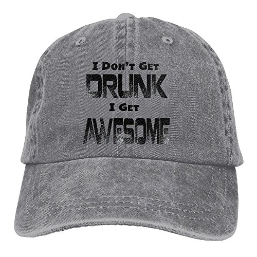 (HXang)/Accessories/Hats/DIRECT FROM USA/HXang I Don't Get Drunk I Get Awesome Adjustable Washed Cap Cowboy Baseball Hat Ash