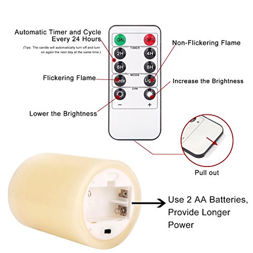 •• Reusable Battery Powered and Last 300+ Hours- OShine flameless pillar candles are powered by two AA batteries (not included) .It provide 300+ hours continuous light. And you can reuse them time and again with minimal effort.