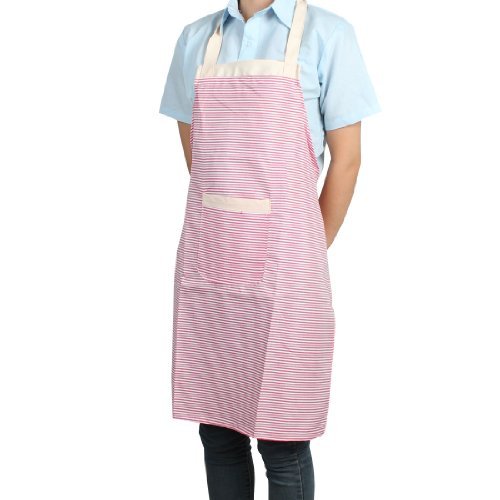 Water & Wood Household Red White Stripe Pattern Patch Pocket Kitchen Apron for Lady