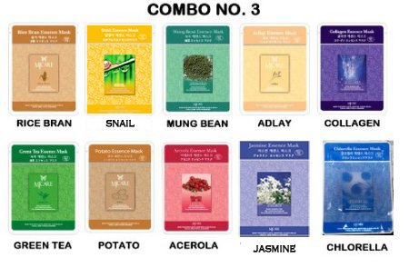 - You Get One of Each Natural Essence From The List : COLLAGEN ESSENCE MASK, GREEN TEA ESSENCE MASK, BRIGHTING(WHITE) ESSENCE MASK, POTATO ESSENCE MASK, RICE BRAN ESSENCE MASK, CHLORELLA ESSENCE MASK, CHESTNUT ESSENCE MASK, ACEROLA ESSENCE MASK, ADLAY ESSENCE MASK, and MUNG BEAN ESSENCE MASK