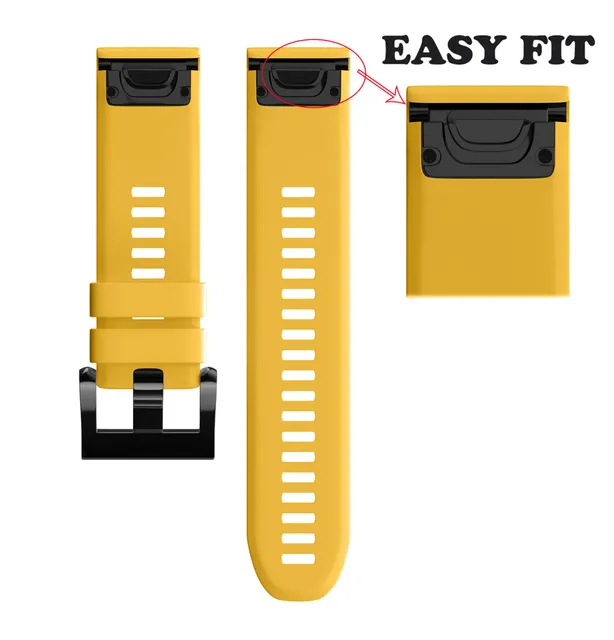 상품 내용 브랜드 새로운 6 색 시계 스트랩 22 미리메터 교체 실리카겔 빠른 설치 밴드 스트랩 가민 훼 5 GPS 시계 Correas 드 reloj 특징: