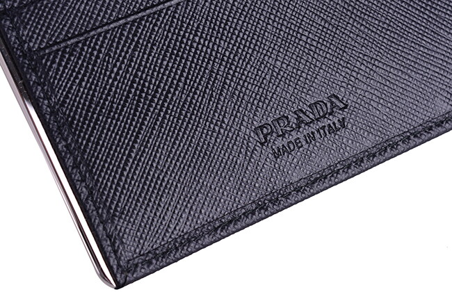 PRADA 사피아노 반지갑 2MO513 블랙 메탈 은장바