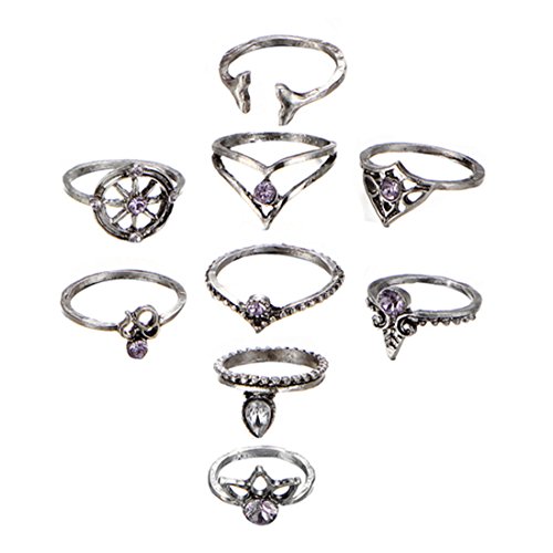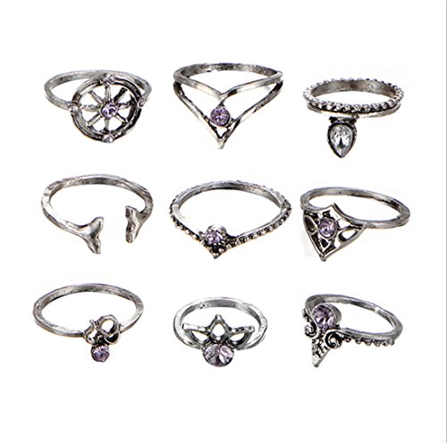 (Tome-R)/Pretend Play Dress-up/Beauty Fashion/DIRECT FROM USA/9PCS New Simple Rings Personality Inlay Diamond Rudder Cross Tree Gem Rings Female Jewerly Sliver