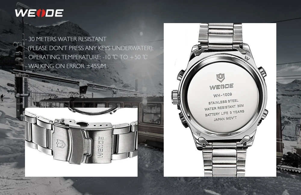 Feature:Auto Date,Water Resistant,Back Light,LED display,Alarm