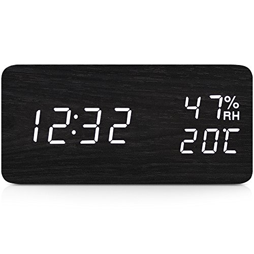-. Feature : 【機能たっぷり】➀時間表示(12H制/24H制切替)②カレンダー・温度・湿度表示③アラーム三つ設定④アラームサイクル設定:「毎日」と「月曜日~金曜日」選択⑤音声感知⑥明るさ三段階調節⑦設定記憶。 / 【外観オシャレ】LEDで大きく明るくデジタル表示しますので、どの角度からもくっきり見やすいです。木目調でオリジナル風を感じておりますし、時計として室内飾りとしても似合っているおしゃれなデザインです。 / 【省エネモード】LEDの明るさは三段階で自動調整できますし、マニュアルでも調整可能です。音声感知機能も搭載していますが、節電理想な選択です。夜間の眩しさが気になる方にもリラックスで眠られます。 / 【複数アラーム】三つのアラーム設定できますが、ご生活に様々な大事の時を提示できるように向かっています。アラーム音速が三段階で上々激しくなるモードです。 / 【給電モード】普段は付属のUSBケーブルでパソコンやテレビ、モバイル電源などのUSBポット又は充電器やアタプタに接続して簡単に充電できます。停電など非常時も使用できるために、3*AAA(単四電池)で簡単に目覚し時計を作動させるように設計しています。