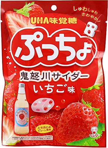原材料:水飴、砂糖、植物性加工油脂、ゼラチン、果糖ぶどう糖液糖、殺菌乳酸菌飲料、いちごピューレ、植物油脂、デキストリン/甘味料(キシリトール、ソルビトール)、酸味料、乳化剤、ゲル化剤(アラビアガム)、重曹、セルロース、香料、着色料(アントシアニン、紫ニンジン)、光沢剤、(一部に乳成分・ゼラチンを含む)