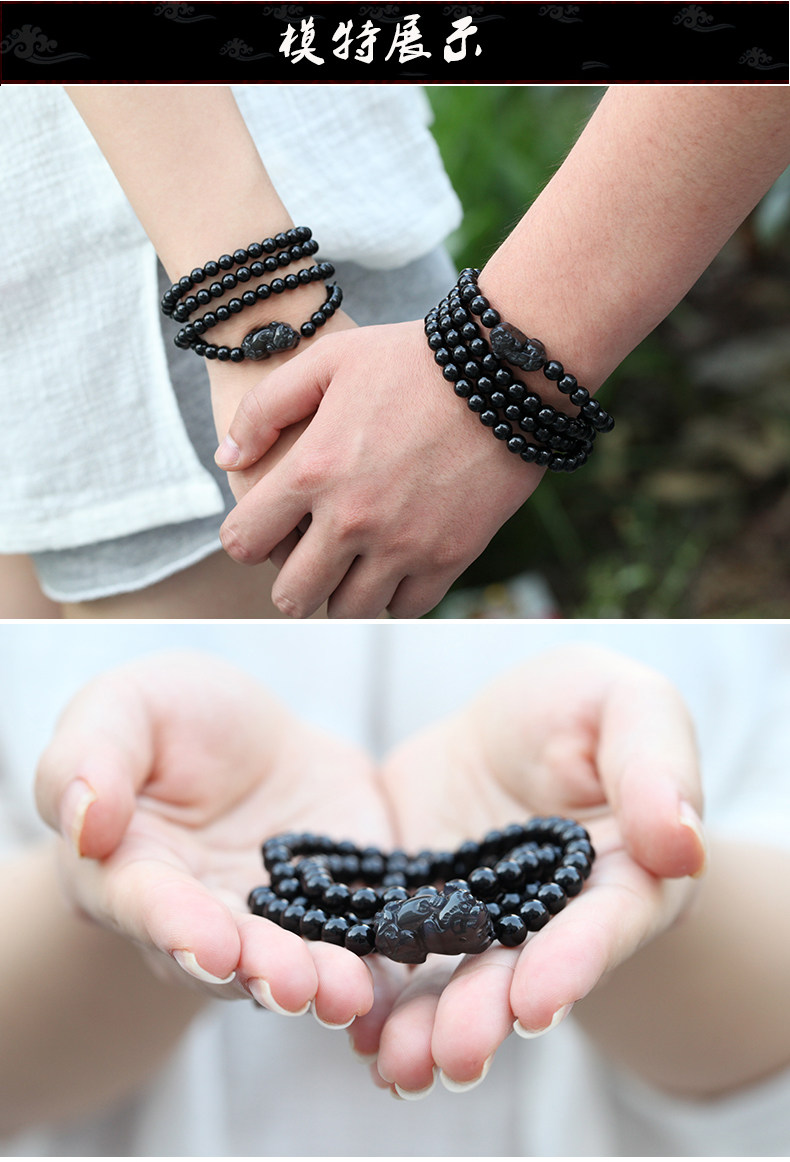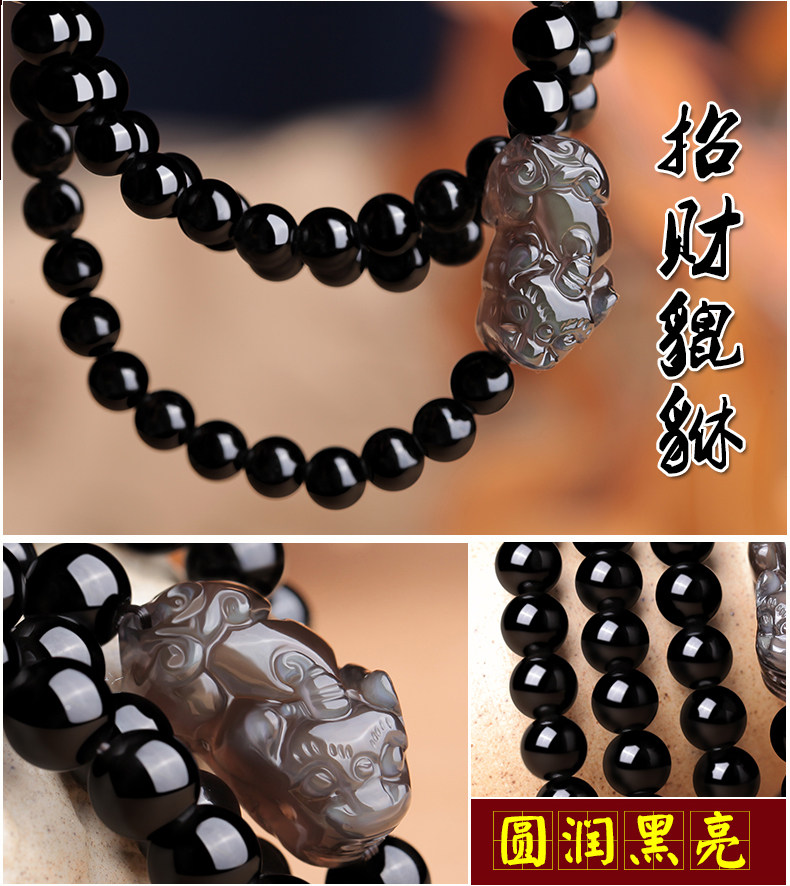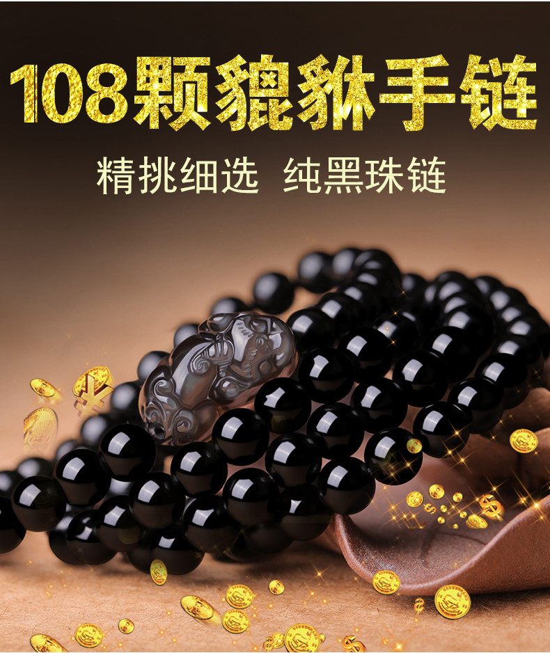 黑曜石手链108颗佛珠手串开光天然冰种貔貅招财男女