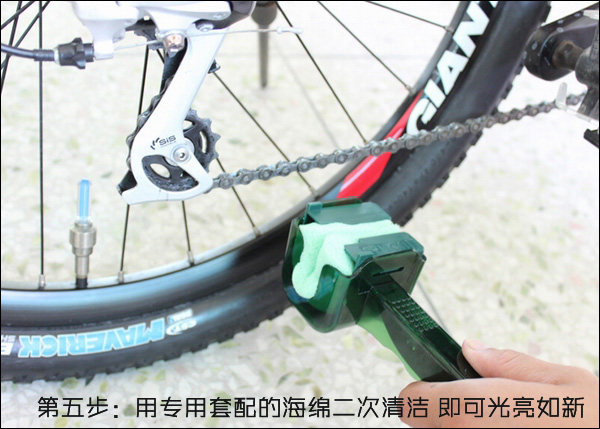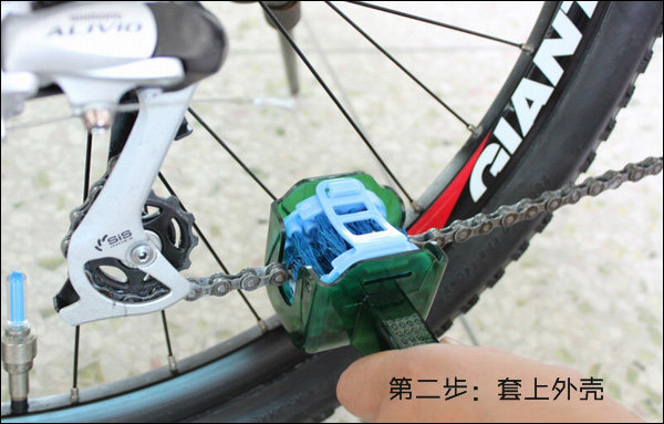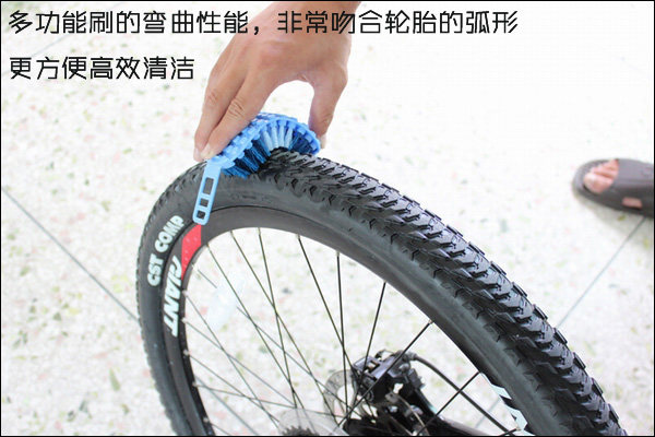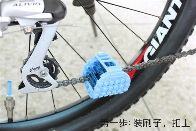 1 soft brush is composed of a soft plastic injection made plus the thickness of two kinds of brush hair can bestraight use also can be bent into a U shape to a chain of three brushing surrounded. By changing the direction ofbrushing basically all around and inside chain can be brush. Soft brush after bending can be put into the bucket shaped handle・ avoid hand contact corrosion and pollution to the cleaning agent and the bucket type shell can store cleaning agent cleaning agent can be dipped into the brush through the through holes on a soft brush・ to a certain extent・ can make the detergent scrub in circulating chain movement reduce waste