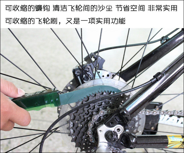 The four can be used independently can cooperate with each other comprehensive and three-dimensional cleaning of bicycle chain -- the flywheel of the whole transmission system.
