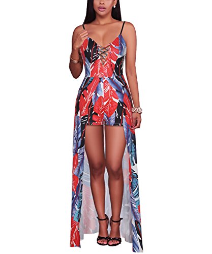 Lace up front, Self-tie, Floral print, Spaghetti Straps, Stretchy, Soft, Romper Dress