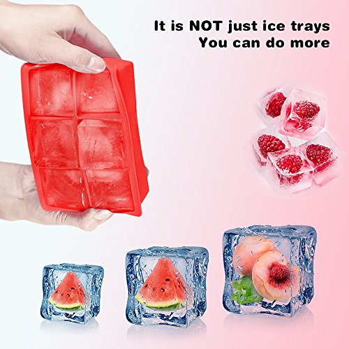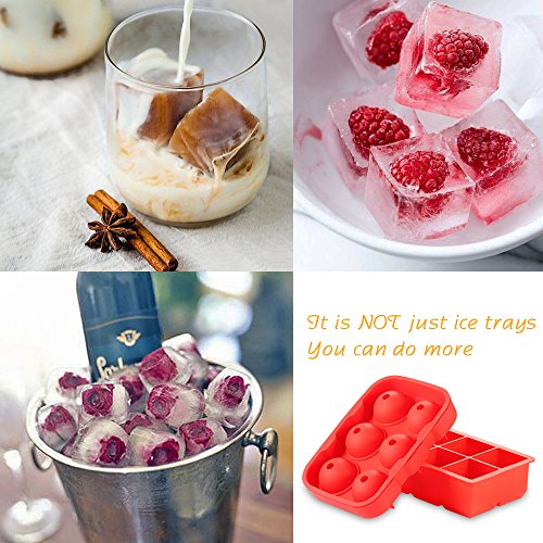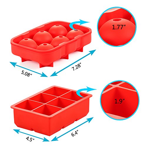 Silicone Ice Cube Tray Combo,2-Inch Large Size Flexible Ice Trays,1.7-Inch Ice Balls for Jelly Pudding,Freezer,Whiskey and Cocktails,Reusable and BPA Free,(Set of 2) Red