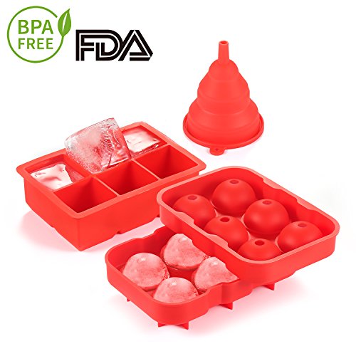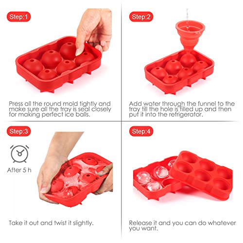 - 6 ICE BALLS MOLD With A Foldable Funnel: Our ice tray creates 6 ice balls at 1.7 in diameter each. Create perfect spheres that are ideal for slowly melting in your favorite wine, whiskey, scotch, vodka, and other alcoholic and non alcoholic beverages!The funnel comes in handy for channeling any liquid or fine-grained substances into any containers with a small opening.