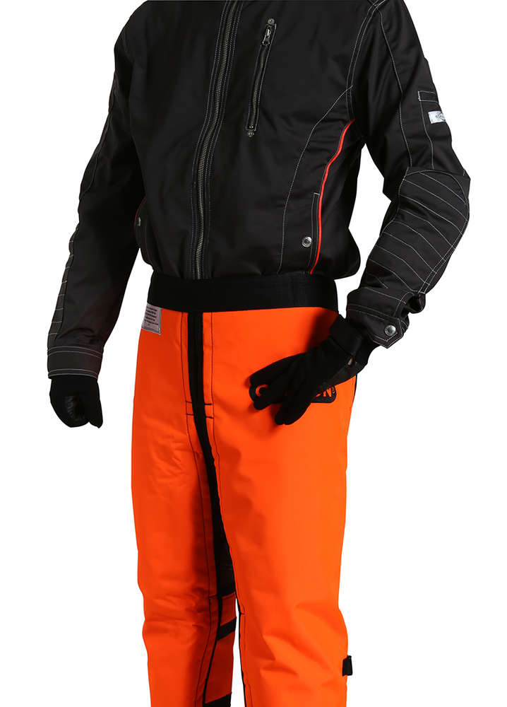 ●回転したソーチェーンが接触すると、内部に入った繊維(切断防止素材)が引き裂かれ、ソーチェーンとスプロケットに絡み付くことでソーチェーンの回転を停止させます