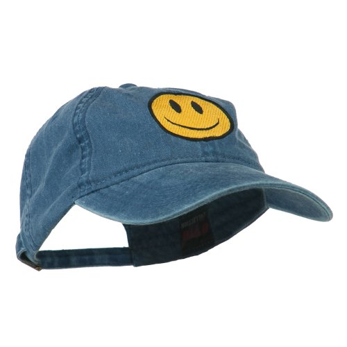 Title : Smiley Face Embroidered Washed Cap - Navy OSFM