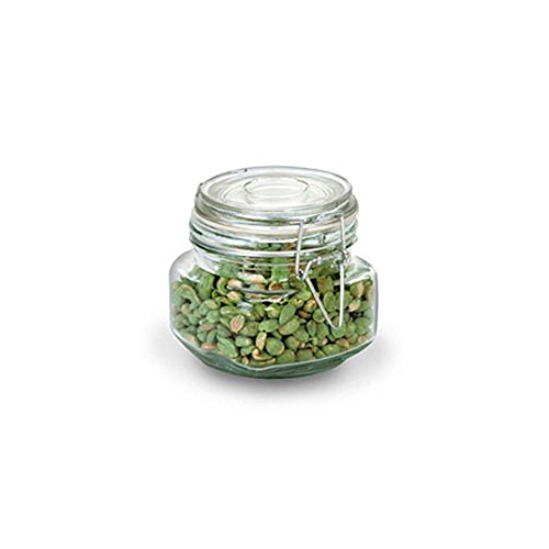 This Anchor Hocking Heremes Jar has a 17 Oz. capacity and is made from clear glass. It has a clamp top lid and is perfect for storing candy, coffee, and more. 17 Oz. capacity Glass construction Clear color Clamp top Width: 4" Height: 4" Model #: 98590R1 6017409