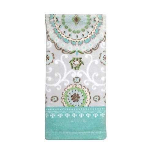 Product DescriptionCamden bathroom towel are made of 100percent cotton towel featuring printed exotic medallions in soothing greys and Aqua. Pair with other members of the Camden line.0