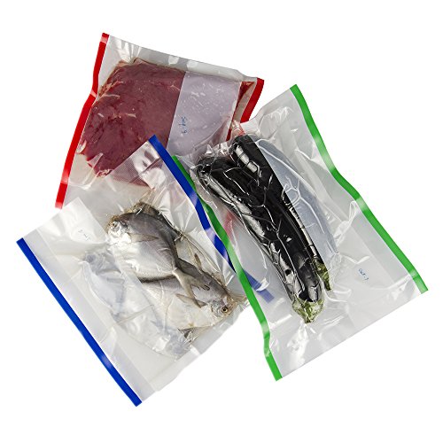 - Easy Classification: Distinct from most of other vacuum sealer bags, the 3 color-coded ones are much easy for food storage, organization and classification. Red for meats, blue for seafood and green for vegetables. Or whatever works for you!