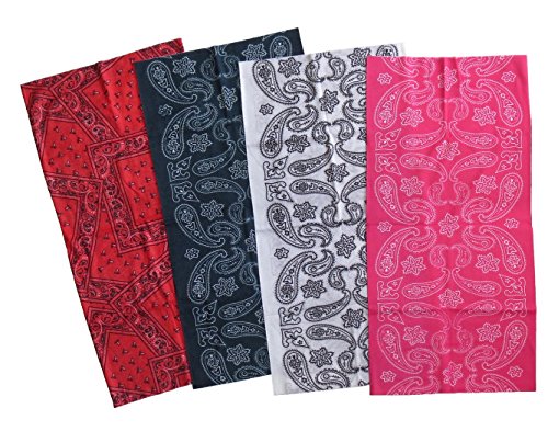 -. Title : 【globalzakka】 バンダナ 多機能チューブ型 ヘアバンド ネックガード ミリタリー風ストラップ付き ペイズリー バンダナ柄 4色 赤・黒・ピンク・白