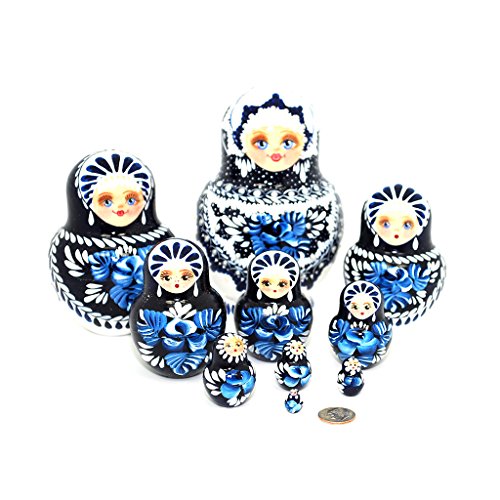 -. Feature : Beautiful museum quality set of 10 Russian Nesting Dolls (Matryoshkas) / Size - 5.5" (H), Hand painted & handmade in Russia / Made from real Linden Wood. Non Toxic. Very Nice! / Signed on the bottom by Sergeiv Posad artist