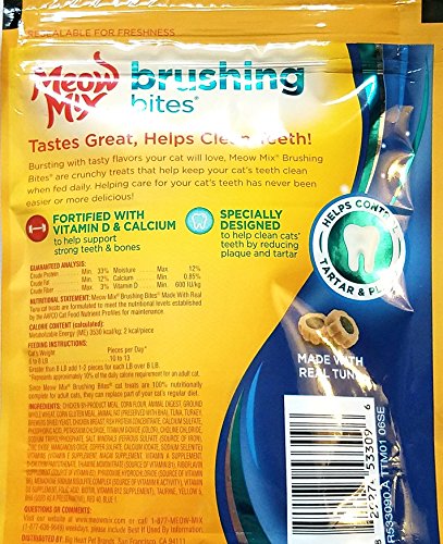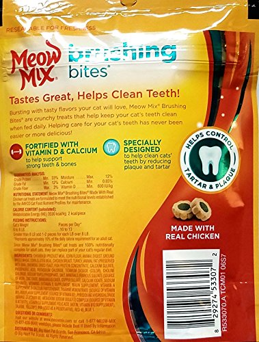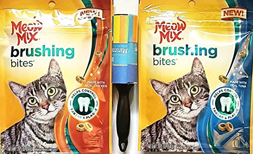 Variety Pack of 2 Meow Mix Brushing Bites 1 Chicken, 1 Tuna, 2.25 Ounce Each, Plus BONUS Mini Lint Roller