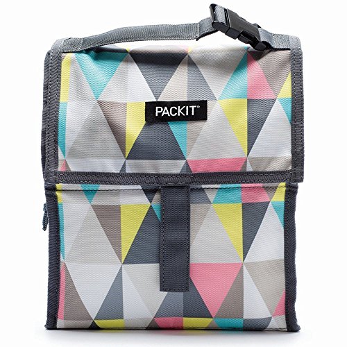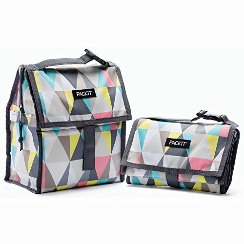 PackIt 10 inch 10 hour Freezable Foldable Reusable Multipal Uses Lunch Bag with Adjustable Strap (Grey Pastel Prism)
