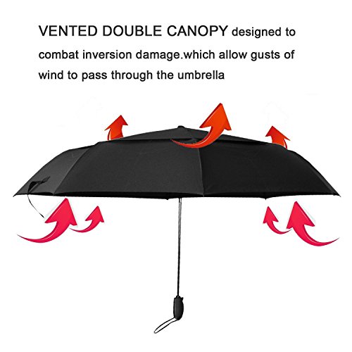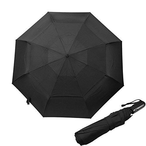 -. Brand : Vellio Shine -. Color : Black -. EAN : 0608442623049 -. Feature : Black travel umbrella with wind vent to help keep shape during wind gusts / Outstanding protection for extreme outdoor weather - Frequently travelling or just walking outdoors, you can't avoid bad weather conditions. With conventional umbrellas, the wind rolls around the canopy and forces the edges up, flipping or inverting the entire umbrella. The Travel Umbrella with its vented DOUBLE CANOPY construction allows the wind to pass through the vents preventing it from flipping over under strong gusts of wind, so you'll never get soggy again / Tested srurdiness and durability - It won't end up tossed in a trash can just when it's pouring down. Our Unique Frame Systems are made of Premium Fiberglass and High Quality Stainless steel: NO rust, NO breaking! The Strengthened Black Metal Shaft and 8 Fiberglass Ribs (compared to the usual 6 or 8) ensure high resistance to 55 mph wind gusts. With 5000 times tested durability, it will survive the elements and the test of time / Portable and lighweight - You don't have to choose between gigantic windproof umbrellas or tiny ones that cannot provide minimal wind protection. This excellent umbrella is the perfect combo of portability, protection and durability. The 190T specially coated water repellent fabric and slip resistant rubberized handle make it outperform other compact umbrellas. it is small enough to slip in a coat pocket, tote or bag / Easy peasy use - Perfect for one handed operation. Simply open or close the umbrella with a press of a button within one second. Its auto OPEN and CLOSE feature gives you quick rain and sun protection. Perfect for anyone who enjoys watching outdoor sports and events, and we mean anyone - do not keep out of reach of children -. IsMemorabilia : 0 -. Label : Vellio Shine -. Manufacturer : Vellio Shine -. ProductGroup : Lawn & Patio -. ProductTypeName : OUTDOOR_LIVING -. Publisher : Vellio Shine -. Studio : Vellio Shine -. Title : Travel Umbrella, Compact for Easy Carrying, Strong, Durable Double Canopy - Auto Open and Close - Windproof Waterproof Sturdy Perfect Gift (Black) -. UPC : 608442623049