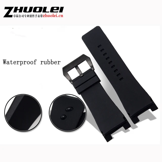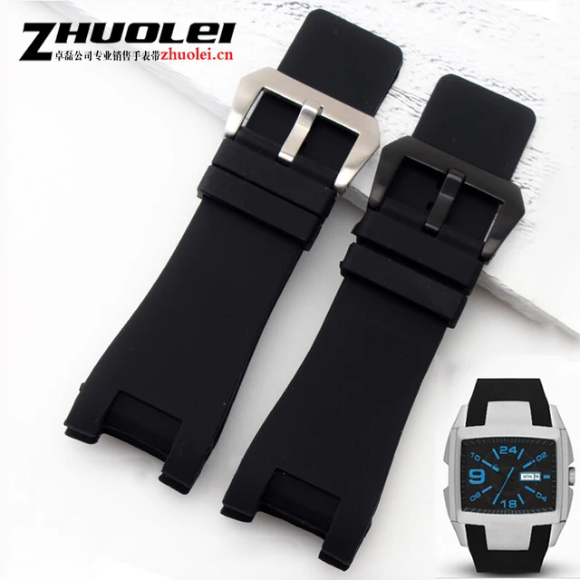 | [해외]새로운 방수 32*17 미리메터 블랙 고무 시계 스트랩 스테인레스 스틸 버클 손목 남성 전용 맞는 DZ1215 1216 팔찌 |