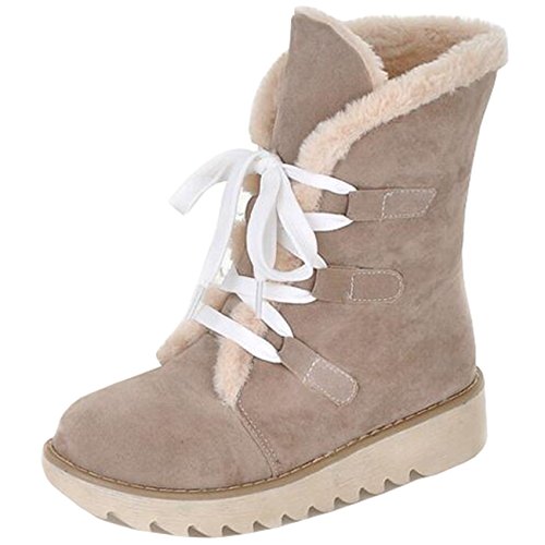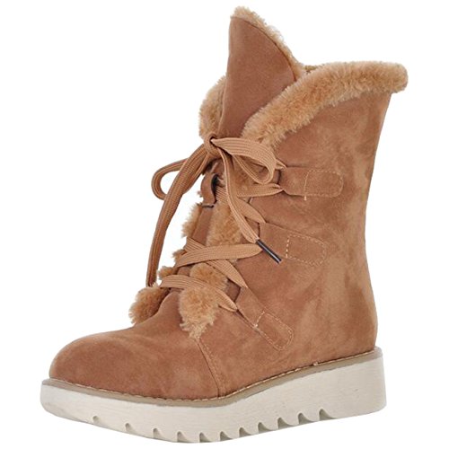 (Mashiaoyi)/Women's/Boots/DIRECT FROM USA/Mashiaoyi Women's Round-Toe Platform Flat Lace-up Snow Boots