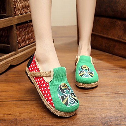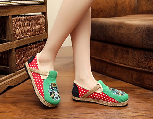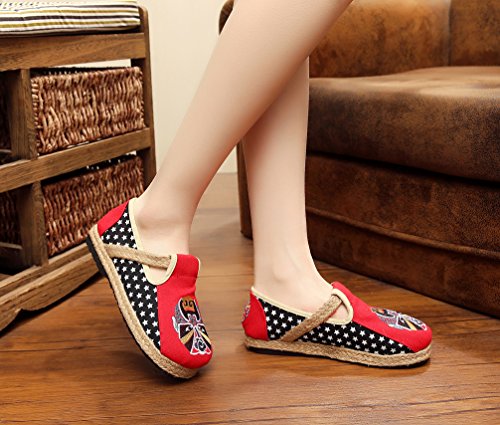 Product Description The martial of the sole is a kind of quite breathable martial, its production is easy on and off. Round Toe covers your feet properly and protects your feet from hurting in your daily life. The vamp is canvas so that it has a good looking and enough graceful. The patterns of this shoe, such as the facial pattern in the operas and stars in the vamp, are so interesting and colorful that you can get more confidence form this shoe. The midsole is made of linen that can offer you a great wearing experience in any time and very d Made of Anti- slip rubber material, with anti-skid function, soft and comfortable for walking own-to-earth for you. The decoration on the vamp which looks like a lace can increase its glamour. Low heel is suitable for you to walk easily. No matter which season you are in, you can wear it to show out your elegant taste and your style.