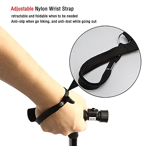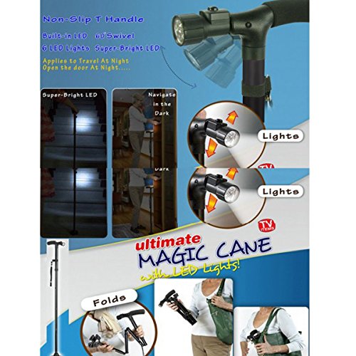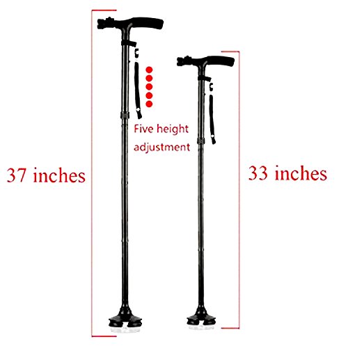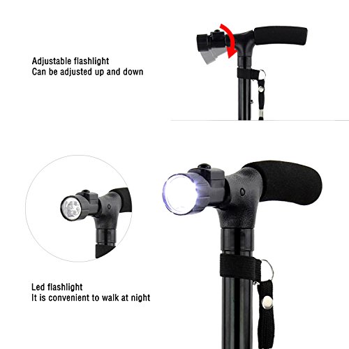 -. Brand : VAlinks -. Color : Black -. EAN : 0190149070009 -. Feature : Made of Aluminum alloy,light weight, folds small so it fits in your handbag. / Length adjustable button at 5-level points: 33.8" to 37.8" - Can support 250 Lb. / Adjustable 6 white bright LED lights so you can choose where is should shine (batteries included). / Pivoting bottom for easy walk any type of terrain Cushion handle for extra comfort. / Adjustable height:82-93.5cm, suitable for most of people. -. IsAutographed : 0 -. IsMemorabilia : 0 -. Label : Valinks -. Manufacturer : Valinks -. MPN : Valinks -. PackageQuantity : 1 -. PartNumber : Valinks -. ProductGroup : Sports -. ProductTypeName : OUTDOOR_RECREATION_PRODUCT -. Publisher : Valinks -. Studio : Valinks -. Title : Walking Canes/ Hiking Sticks/ Folding Crutch,Valinks Folding Canes with Adjustable Led Flashlight and Cushion Handle -. UPC : 190149070009