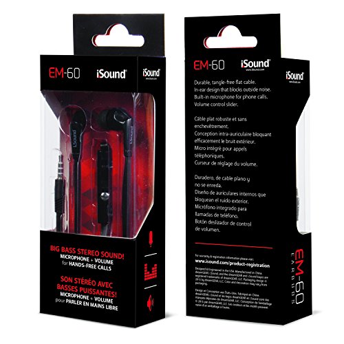 It's all about the bass - the EM60 offers incredible bass tones in a compact form. These earbuds seal your ears to create cavernous bass tones. Complemented with a tangle free smooth, flat cable, this headset rivals headphones of a much higher price! crystal clear stereo creates a concert like effect for music, or use the inline microphone to jump on a call. Lightweight, and comfortable, the EM 60 is a winner!Feature