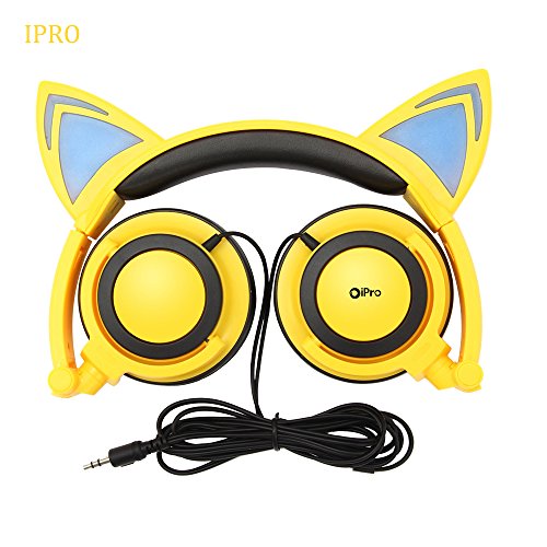 -. Title : IPRO Cat LED Headphones with LED Ears for Kids, Foldable Wired Over-Ear Gaming Headset Hifi Stereo Surround Sound Comfortable Headband with Lovely Glowing Ears for Girls/Boys/Children Xmax Gift