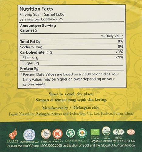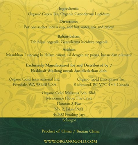 -. Feature : Tastes Great! / 100% Certified Organic Green Tea Ganoderma Lucidum Extract / Only 7 Calories per Sachet! / 25 Sachet per box / 100% Organic Green Tea