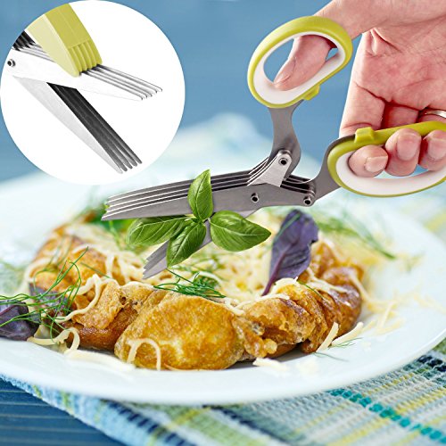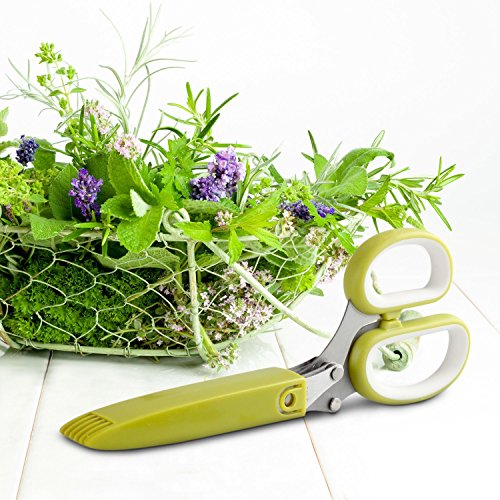 Orblue Herb Scissors, Food Cutter Shears with Five 3-Inch Blades, Chopper Blade Cover Included (1-Pack)