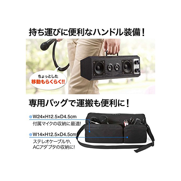 결혼식의 2차회나 이벤트 등에 간편하게 반입하고, 셋팅 할 수 있는 확성기 스피커와 마이크의 세트.시판 다이나믹 마이크도 접속 할 수 있는 마이크 입력단자(φ6.3mm스테레오 표준 잭)를 탑재.